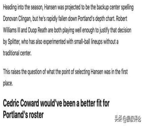 开拓者队记:杨瀚森迅速跌出轮换阵容,当初选他的意义何在