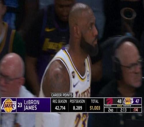 老将詹姆斯选择出战背靠背的比赛,此役他又打了32分钟,全场17投9中,独得24分4篮板7助攻的数据,还送出了2次封盖,攻防两端发挥相当出色。也是詹姆斯的爆发,帮助湖人队从落后完成了反超,虽然年满41岁了,但他的赛场影响力依旧很大。 值得一提的是,此役过后,詹姆斯又迎来了里程碑时刻。在拿到这24分之后,詹姆斯的常规赛总得分就达到了42727分,同时他的季后赛总得分是8289分,这样一来,他常规赛+季后赛的总得分,就来到了51016分。他成为NBA历史上,唯一生涯总得分突破51000分的大神。